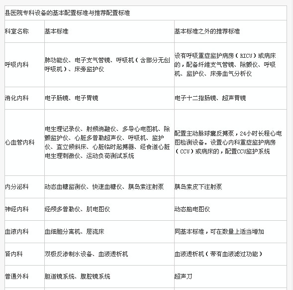 注:在專科設(shè)備的配置上,《基本標(biāo)準(zhǔn)》和《推薦標(biāo)準(zhǔn)》的規(guī)定簡單介紹,如下圖。