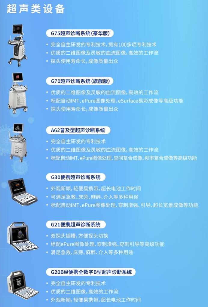 為此,普朗醫(yī)療聯(lián)合普愛醫(yī)療、南京普朗、南京舒普思達(dá)、恩普醫(yī)療、三諾生物組成“普系抗疫聯(lián)盟”,整合發(fā)熱門診防疫抗疫所需要的配置的醫(yī)療物資,推出發(fā)熱門診解決方案,幫助醫(yī)療設(shè)備一站式采購(gòu)??蛻艨梢愿鶕?jù)各自的個(gè)性化需求,來確定一個(gè)適合自己的打包配置方案。 一、醫(yī)學(xué)影像設(shè)備 移動(dòng)DR 動(dòng)態(tài)DR 固定DR 雙立柱DR 動(dòng)態(tài)DRF 二、檢驗(yàn)類設(shè)備 全自動(dòng)生化儀 凝血分析儀 血?dú)馍治鰞x 血?dú)怆娊赓|(zhì)分析儀 酶標(biāo)分析儀 洗板機(jī) 特定蛋白分析儀 血糖儀 三、呼麻急救類設(shè)備 有創(chuàng)呼吸機(jī) 無(wú)創(chuàng)呼吸機(jī) 四、超聲類設(shè)備 超聲診斷系統(tǒng) 便攜式超聲診斷系統(tǒng)