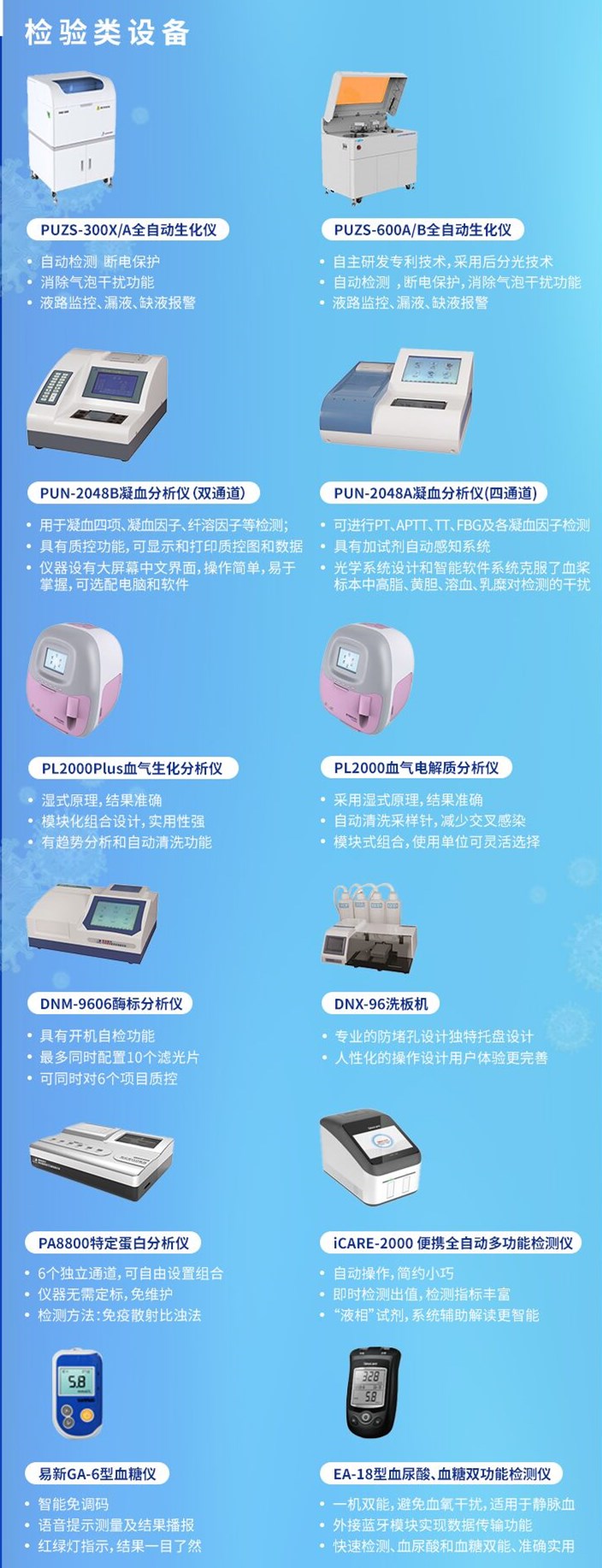 新型肺炎在病情監(jiān)測和治療監(jiān)測時(shí)需要密切監(jiān)測患者的生化指標(biāo),根據(jù)指標(biāo)的進(jìn)一步調(diào)整治療方案。 紅細(xì)胞沉降率測定儀是用來檢測紅細(xì)胞沉降率,也就是血沉,新型肺炎患者大多數(shù)患者的血沉?xí)仙?,血沉的檢查雖然不具有特異性。但是作為鑒別診斷,往往可以做血沉檢查協(xié)助鑒別其他疾病。 血凝分析儀用來檢測凝血四項(xiàng)及凝血因子等凝血指標(biāo),凝血異常與新型肺炎患者不良預(yù)后相關(guān),大部分死亡病例存在彌散性血管內(nèi)凝血(DIC),因此對(duì)于新型肺炎患者,特別是重癥患者,了解其凝血特征、密切監(jiān)測凝血指標(biāo),有助于早期干預(yù)、降低病死率。 血?dú)夥治鰞x不僅檢測包括血液氣體及酸堿平衡狀態(tài)分析,還包括乳酸等代謝物、電解質(zhì)的分析,對(duì)于判斷新型肺炎患者臨床分型、急危重病患的搶救、呼吸衰竭的診斷檢測等具有重要作用。在新型肺炎的治療方案中,符合氧飽和度≤93%或動(dòng)脈血氧分壓(PaO2)/吸氧濃度(FiO2)≤300mmHg中任何一條就可以判斷為重癥患者。 特定蛋白分析儀可以檢測患者的C-反應(yīng)蛋白(CRP), C-反應(yīng)蛋白可以作為一項(xiàng)檢測炎癥的指標(biāo),在急性炎癥反應(yīng)階段其含量可迅速升高?;疾r(shí),盡早治療是至關(guān)重要的。 生物安全柜是用來保護(hù)操作者本人、實(shí)驗(yàn)室環(huán)境以及實(shí)驗(yàn)材料的,為操作診斷性標(biāo)本、原代培養(yǎng)物以及病菌毒株等具有感染性的實(shí)驗(yàn)材料時(shí)提供防護(hù),使其避免暴露于上述操作過程中可能產(chǎn)生的感染性氣溶膠和濺出物。在進(jìn)行新型冠狀病毒檢測檢驗(yàn)活動(dòng),如核酸檢測、血常規(guī)及血型檢測、尿干化學(xué)檢測、生化及免疫學(xué)檢測、便常規(guī)和血清G試驗(yàn)等時(shí),都必須在生物安全二級(jí)的實(shí)驗(yàn)室中進(jìn)行。 血液細(xì)胞分析儀是用于臨床血常規(guī)檢測的儀器,血常規(guī)檢查就是對(duì)血液中的有形成分即紅細(xì)胞、白細(xì)胞及血小板這三個(gè)系統(tǒng)的量和質(zhì)進(jìn)行檢測和分析,是基本的血液檢驗(yàn),是醫(yī)生診斷病情的常用輔助檢查手段之一。 尿液分析儀對(duì)泌尿系統(tǒng)、消化系統(tǒng)、心血管和內(nèi)分泌系統(tǒng)多種疾病的診斷、療效觀察,預(yù)后評(píng)估以及人群健康保健都有重要價(jià)值。 這樣多的臨床檢驗(yàn)設(shè)備,如果采購起來是不是很麻煩呢?為此,普朗醫(yī)療推出一站式采購解決方案,方便相關(guān)醫(yī)療機(jī)構(gòu)快速采購,具體的設(shè)備清單如下: